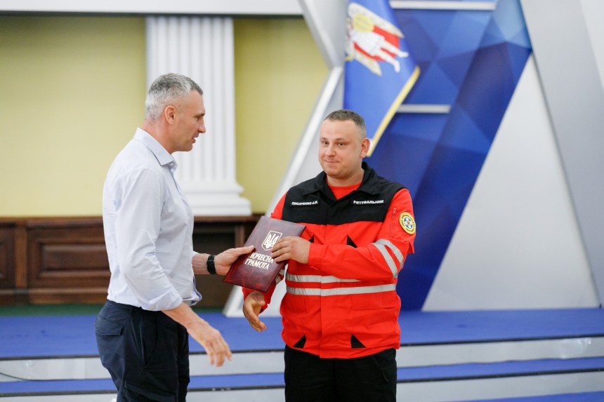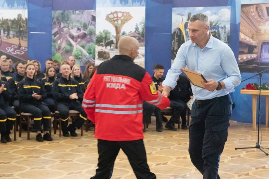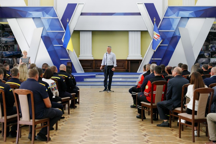 Фоторепортаж із вручення столичним рятувальникам відзнак від міста – Любові Голуб'ятнікової, КМДА