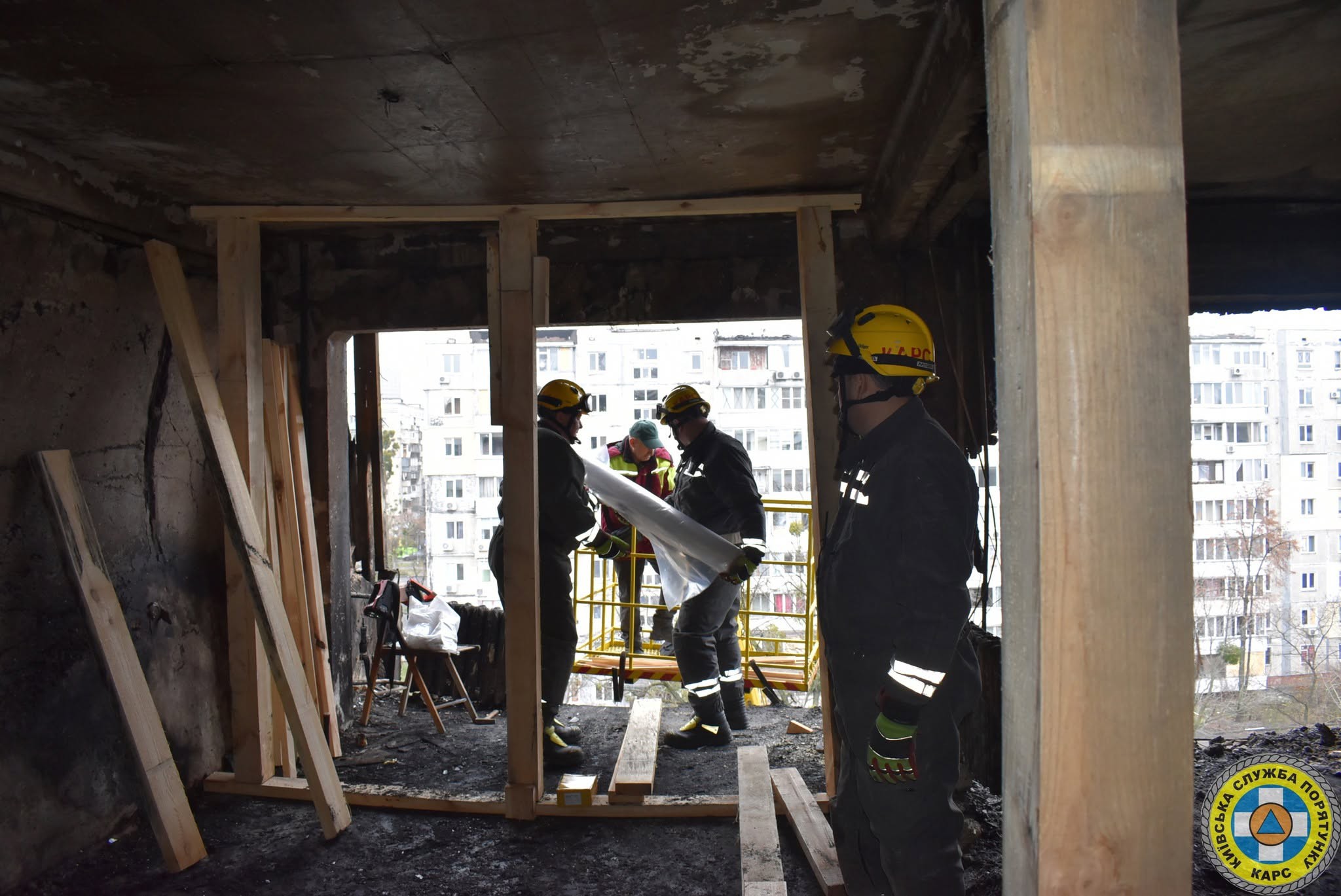 Важливо, що для відновлення пошкоджених ворожими атаками будинків та споруд нашого міста у КАРС створено аварійно-технічний загін, що базується на лівому березі столиці й виконує саме аварійно-відновлювальні роботи.