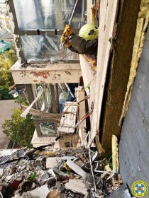 Оперативні підрозділи третього та четвертого аварійно-рятувальних взводів комунальної аварійно-рятувальної служби (КАРС) "Київська служба порятунку" виконали демонтаж аварійних конструкцій та встановили опорні стійки у пошкоджених житлових будинках Святошинського та Дарницького районів.