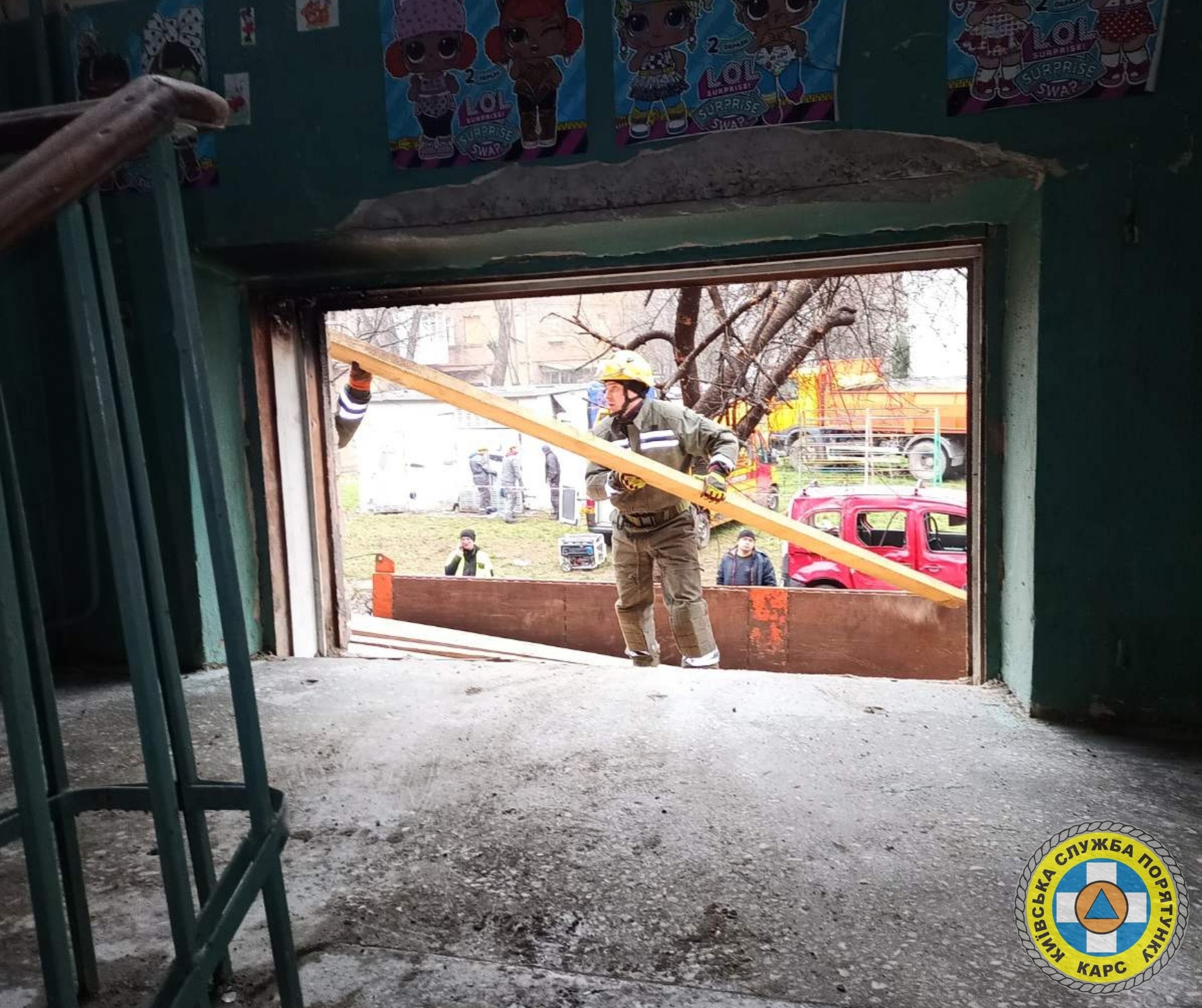 У Святошинському районі встановили опірні стійки у пошкоджених помешканнях задля подальшого руйнування будівельних конструкцій.