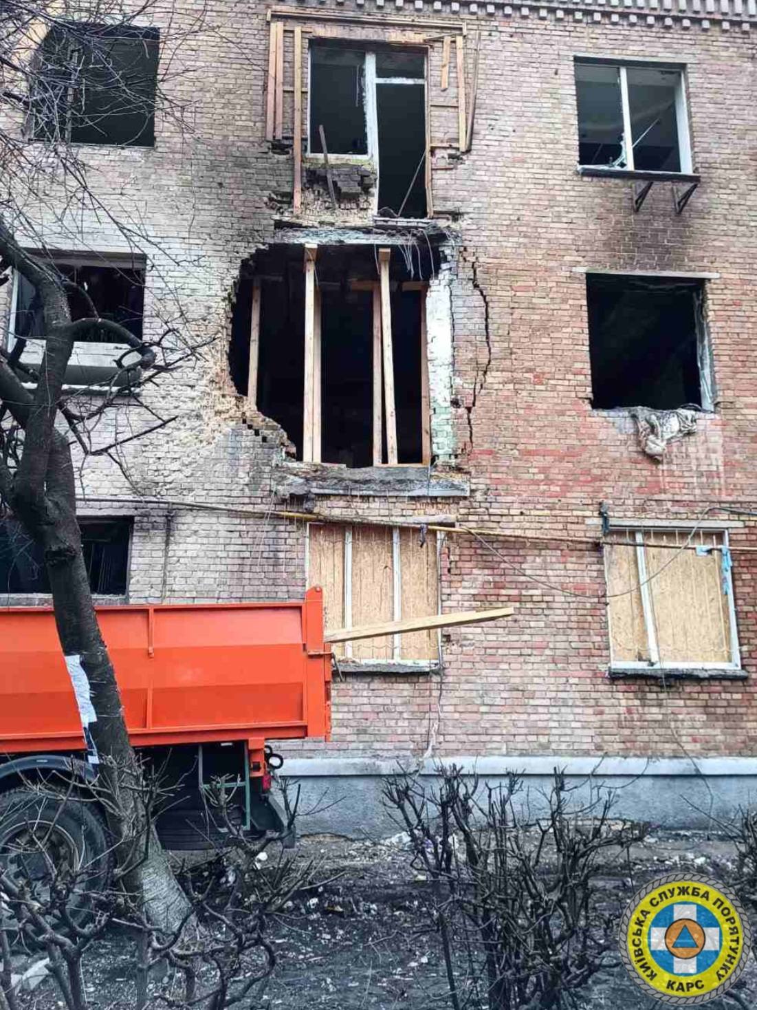 Рятувальники КАРС ліквідовують наслідки сьогоднішньої атаки на столицю в Дніпровському, Дарницькому та Святошинському районах міста
