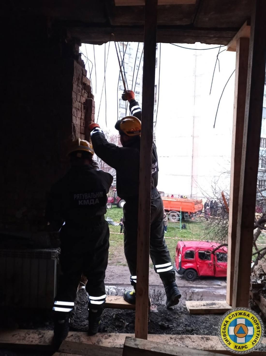 Оперативні підрозділи комунальної аварійно-рятувальної служби "Київська служба порятунку" з ночі проти 29 листопада працюють на місцях пошкоджень та руйнувань внаслідок ворожої атаки.