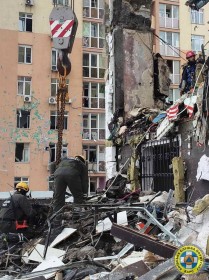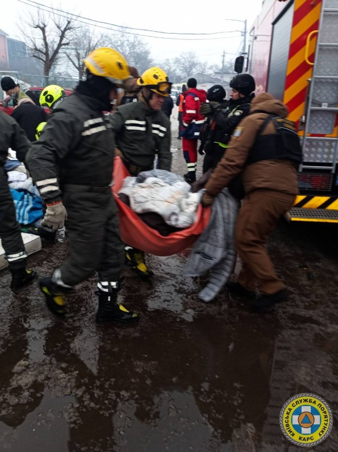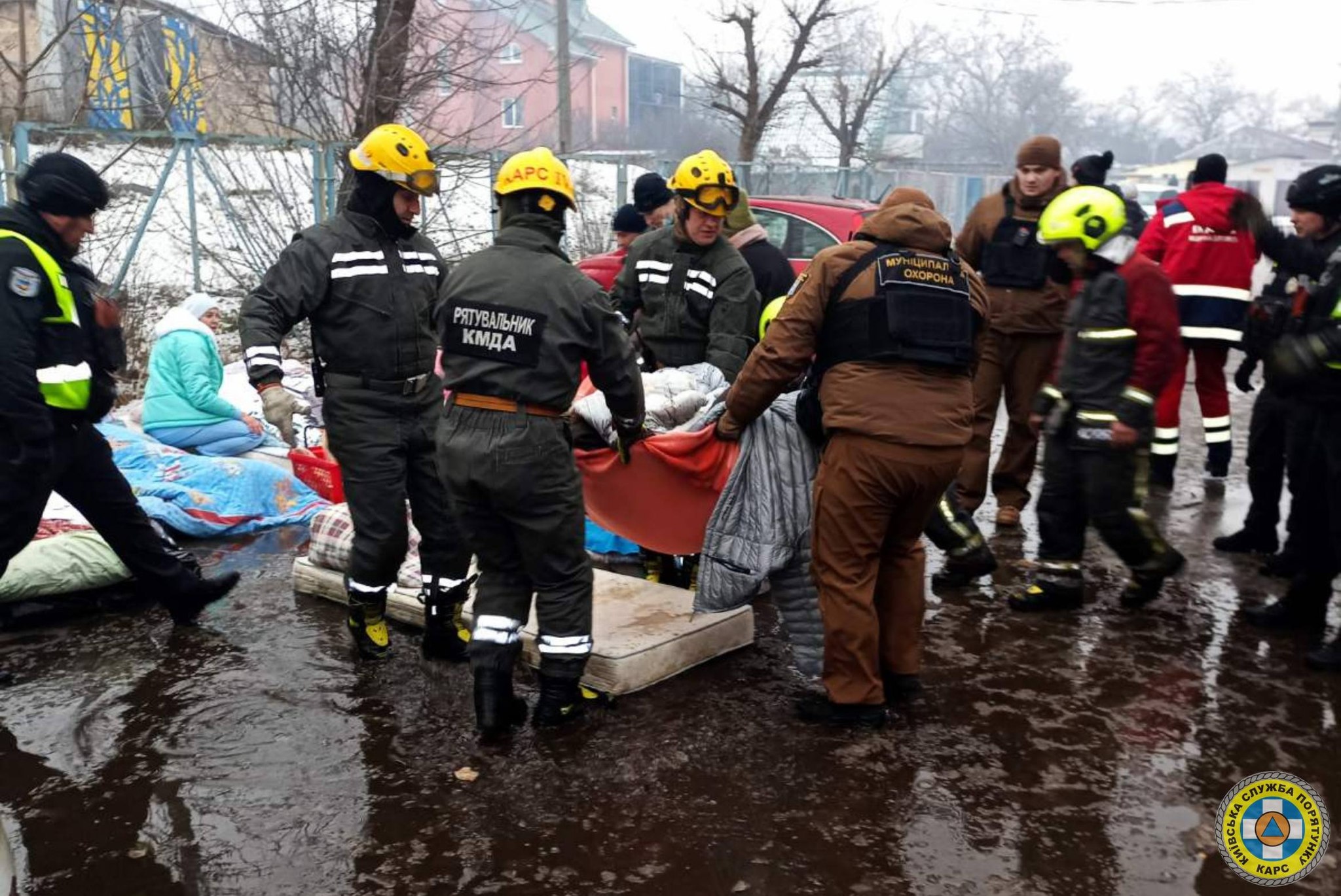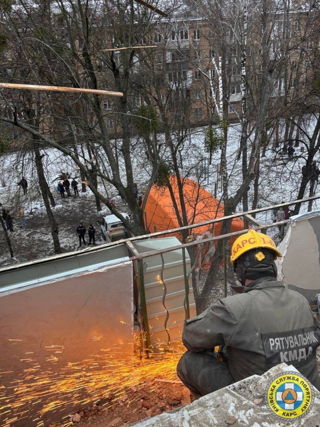 У Дніпровському районі, де постраждав багатоквартирний житловий будинок, рятувальники КАРС деблокували двері помешкань для порятунку мешканців, здійснювали пошук загиблих та постраждалих, зараз демонтують аварійні конструкції. Також допомогли рятувальникам ДСНС встановити пункт обігріву.