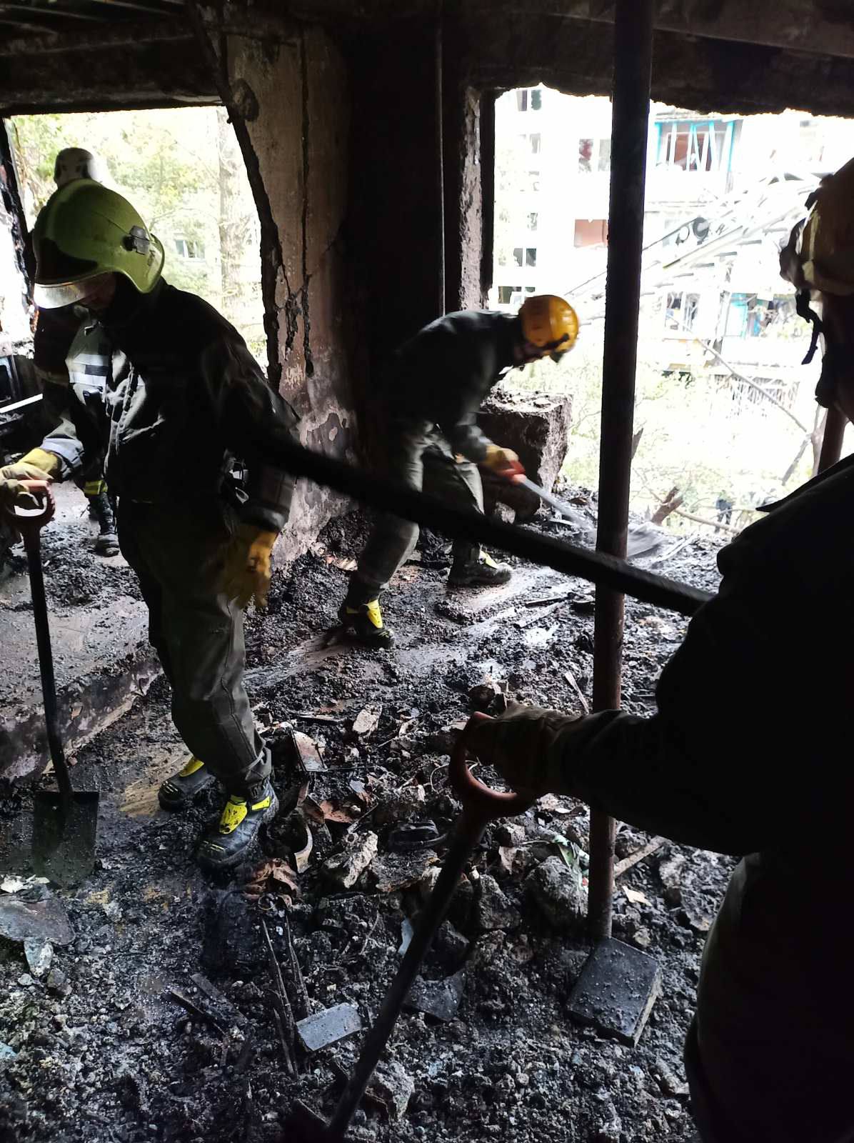 Оперативні підрозділи другого й третього аварійно-рятувальних взводів обстежували місця влучань, допомагали вогнеборцям Головного управління ДСНС в місті Києві у гасінні пожеж, евакуації мешканців постраждалих будинків, пошуку потерпілих.