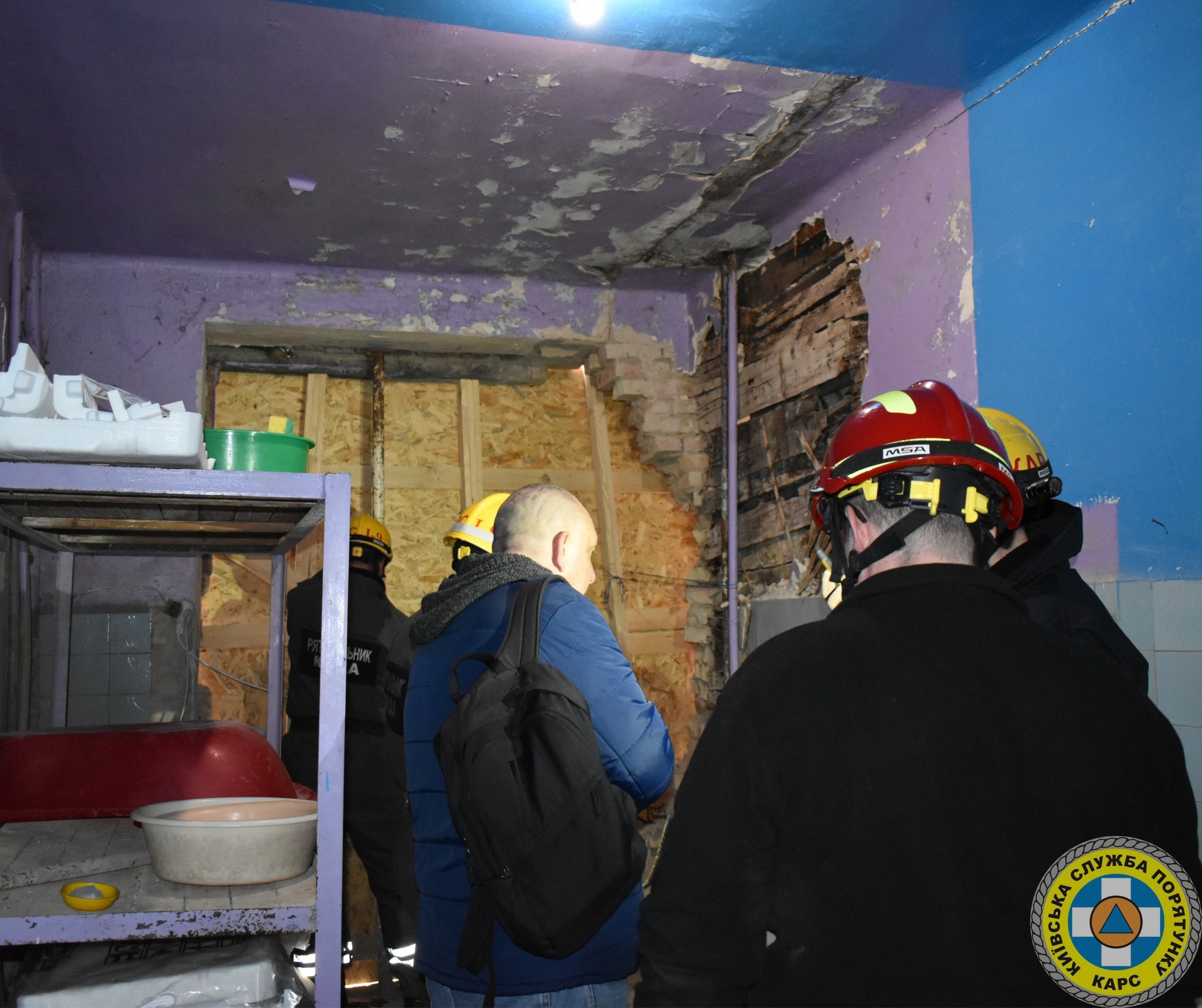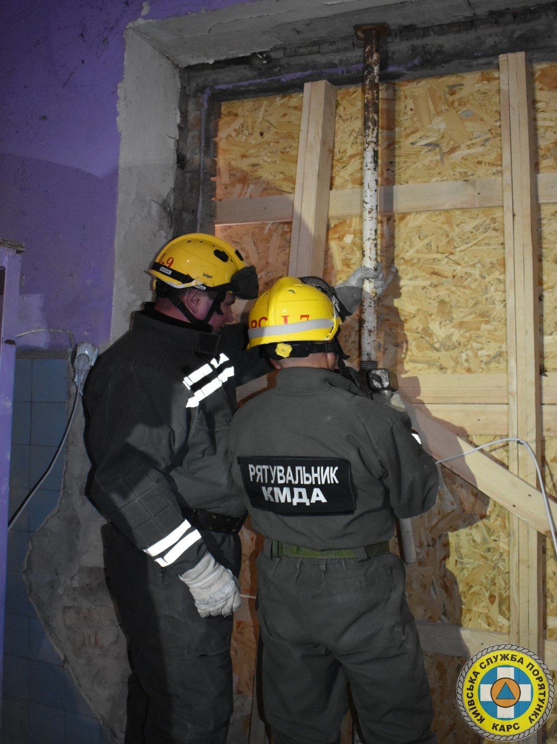 Працювали рятувальники першого аварійно-рятувального взводу (1 АРВ) комунальної аварійно-рятувальної служби КАРС "Київська служба порятунку", провели протиаварійні заходи, щоб запобігти можливому обвалу конструкцій в будинку