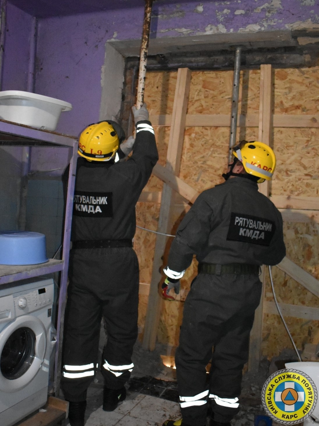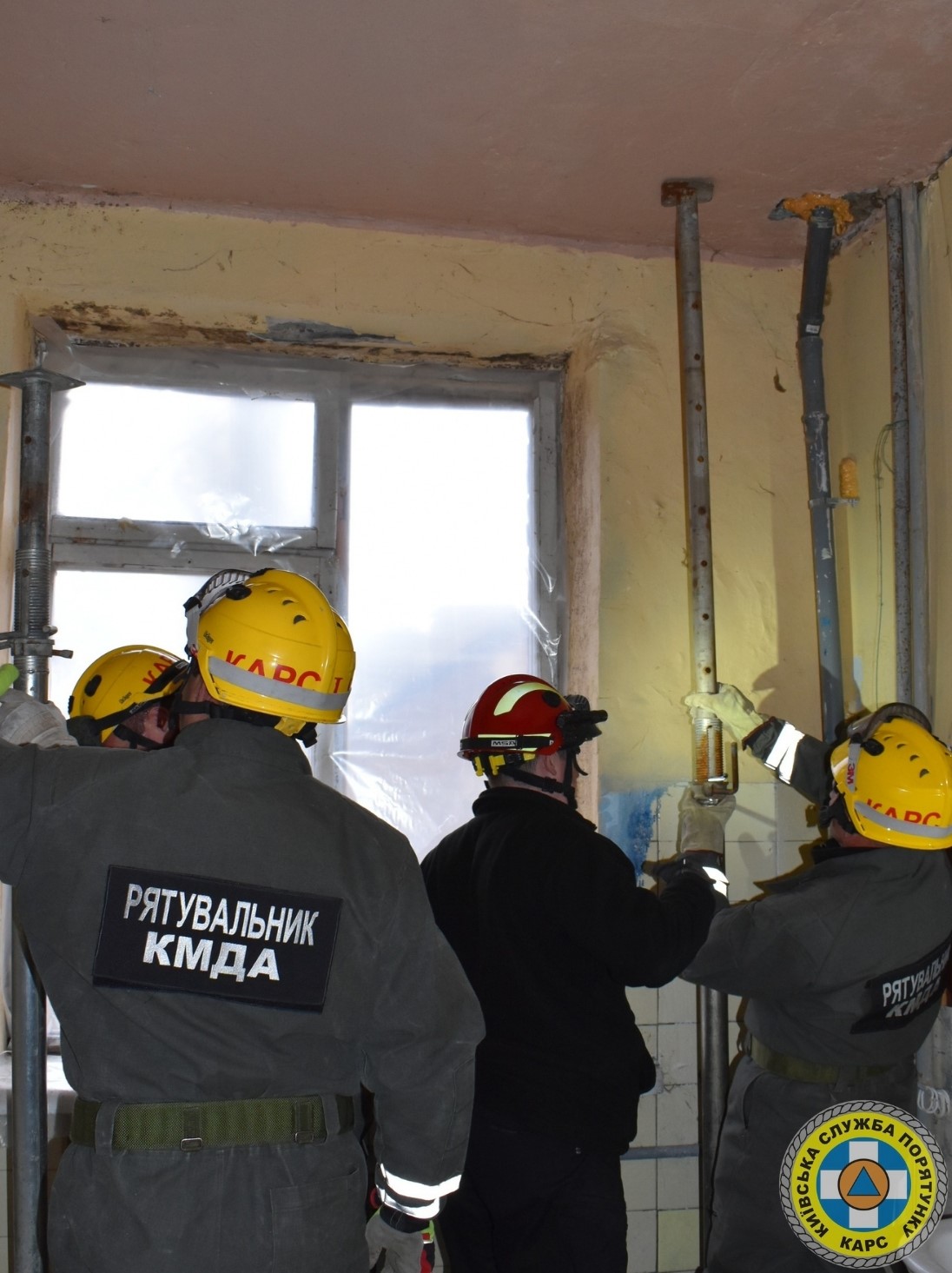 Рятувальники КАРС постійно проводять аварійно-відновлювальні роботи у пошкоджених житлових будинках столиці