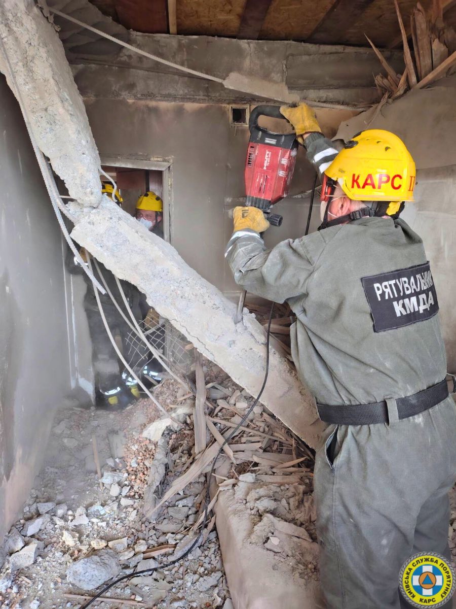 Рятувальники КАРС продовжують роботи з ліквідації наслідків ворожого обстрілу столиці, що стався 7 вересня