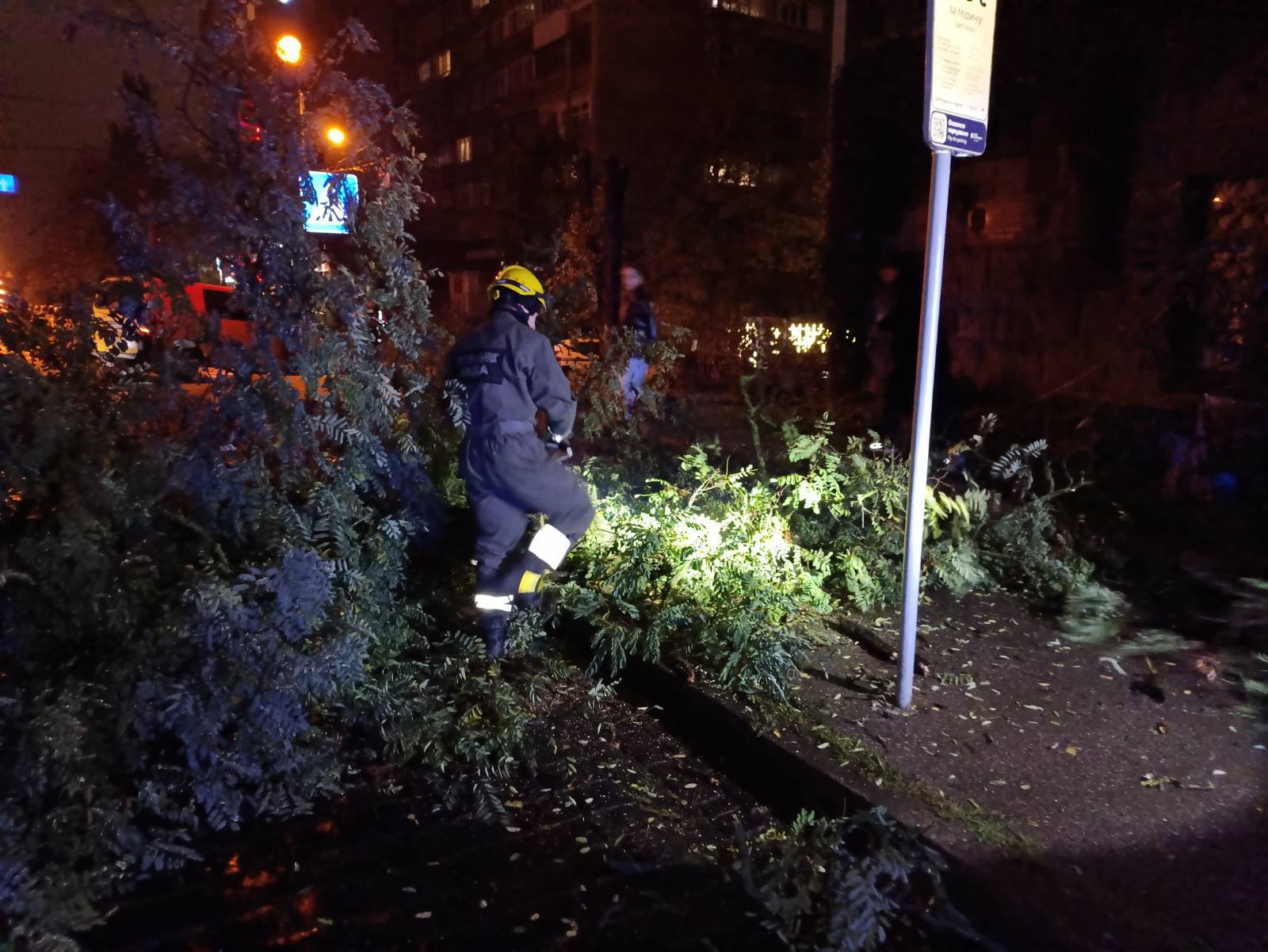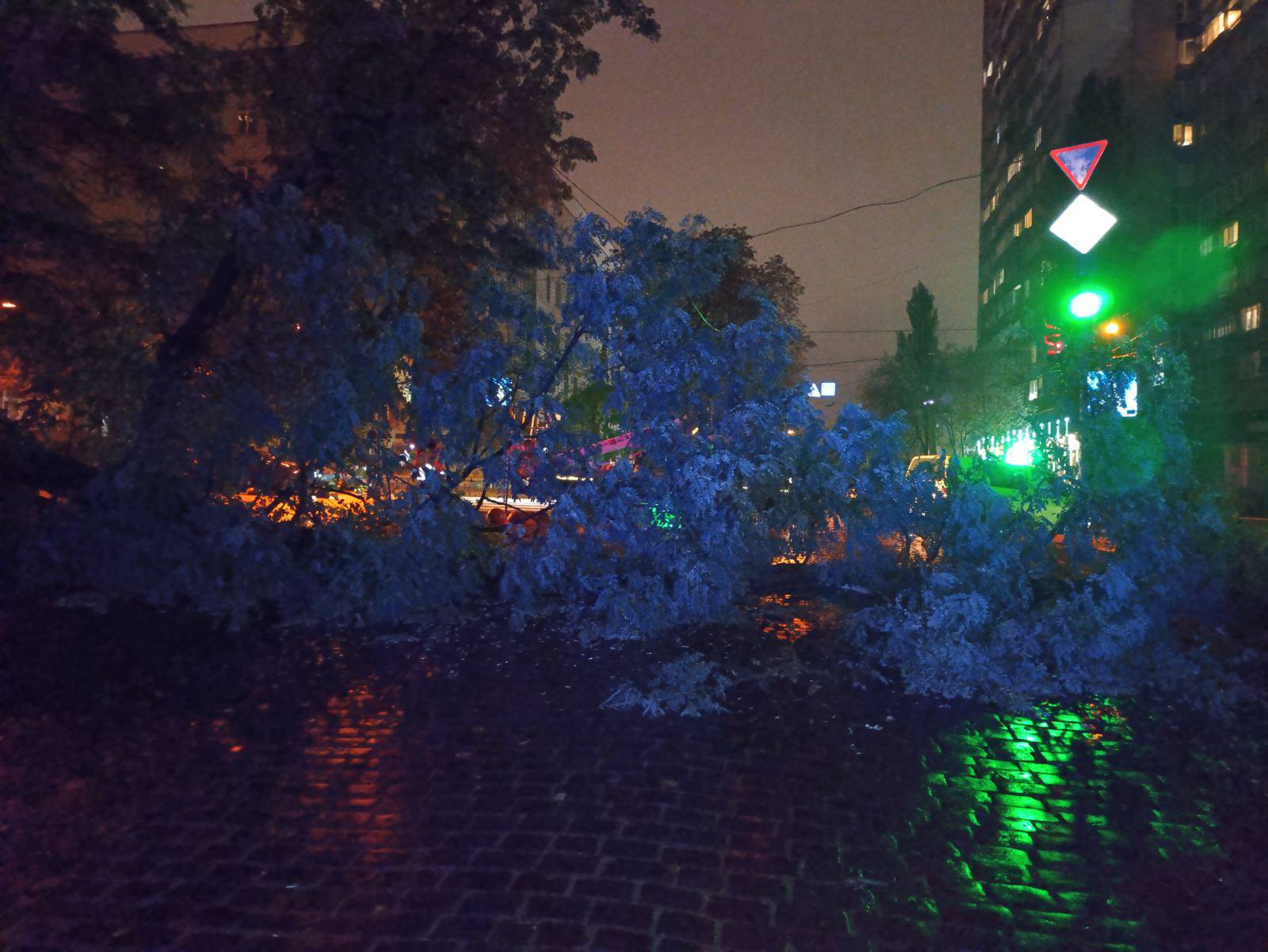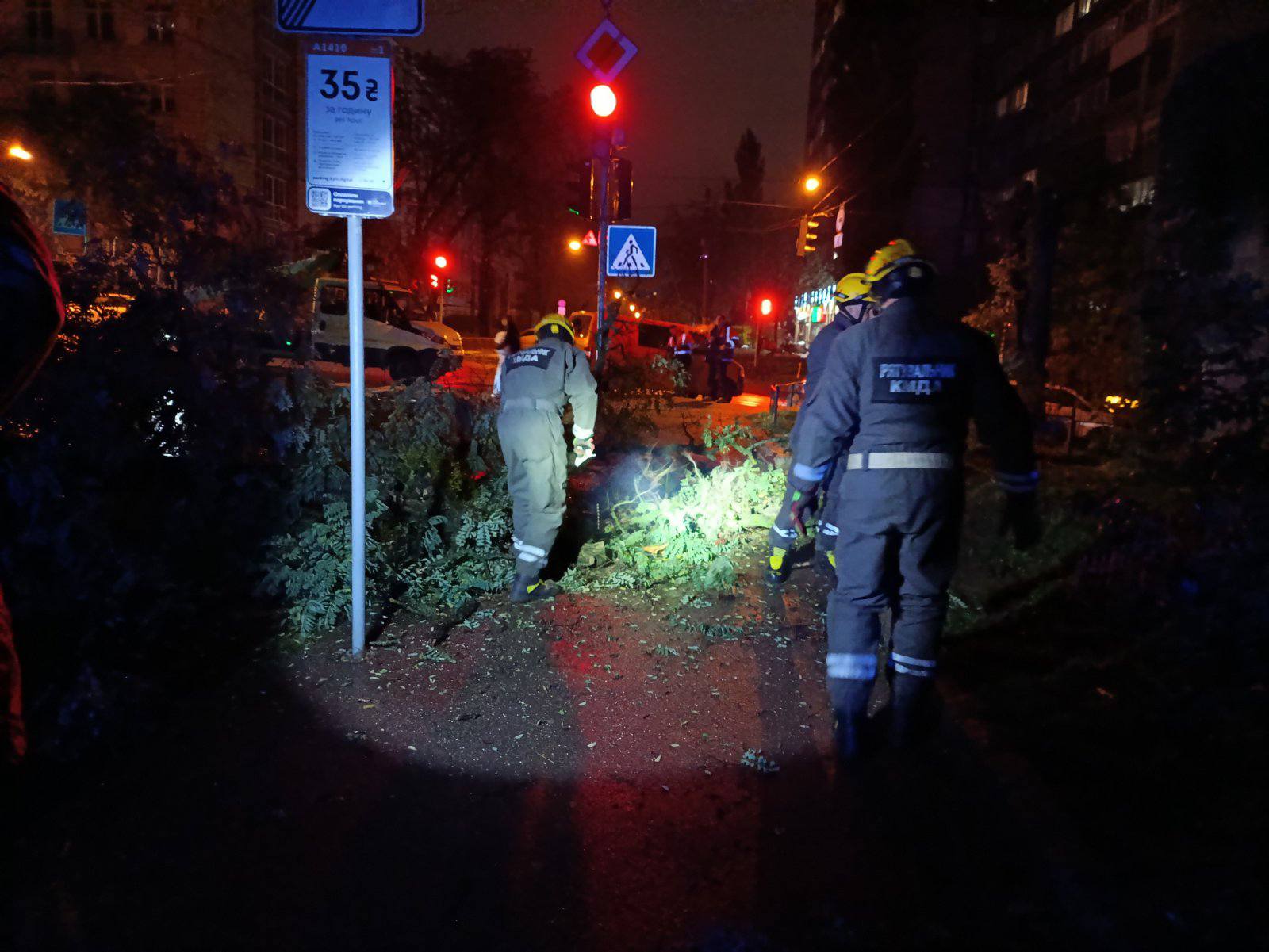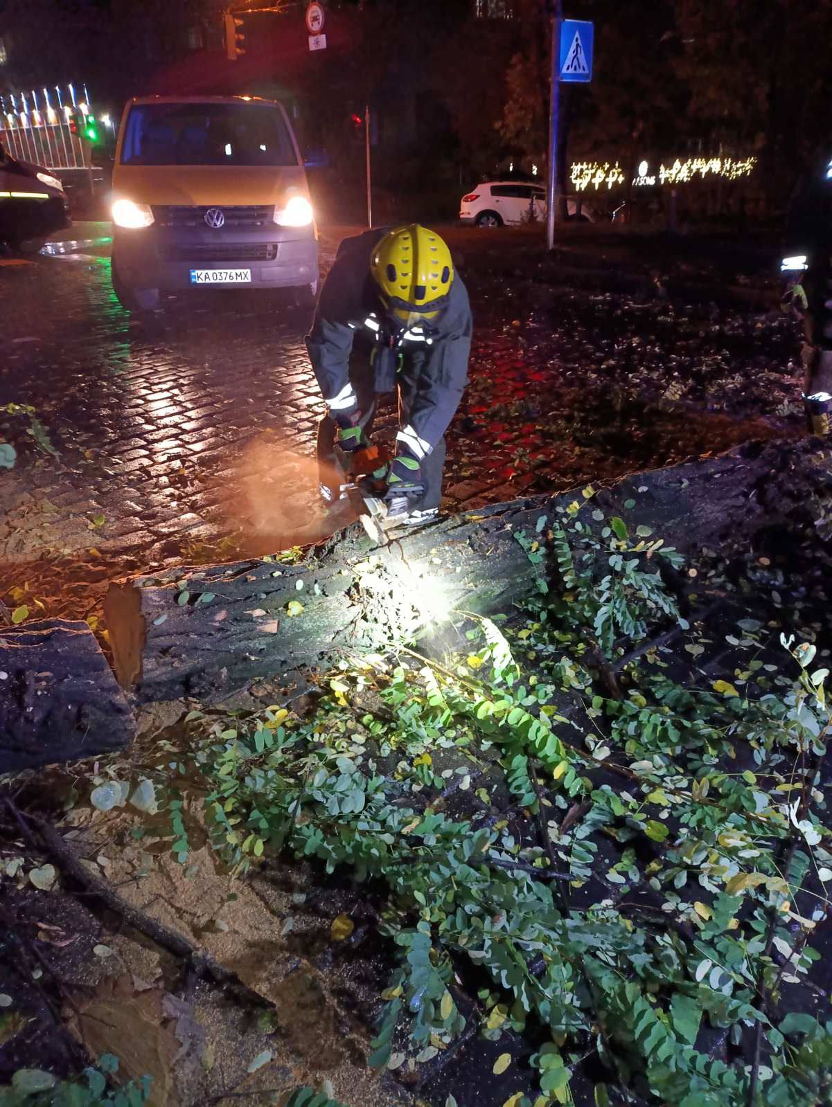 Зокрема, на проспекті Георгія Гонгадзе, у Подільському районі Києва, на житловому масиві Виноградар, прибрали дерево, що впало на проїжджу частину дороги.
