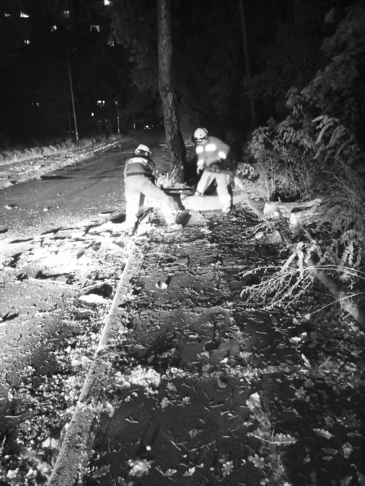 Дерево також впало на проїжджу частину по вулиці Богдана Хмельницького, в Шевченківському районі. Рятувальники, попри пізню пору й негоду, оперативно прибрали дерево й рух транспорту було відновлено.