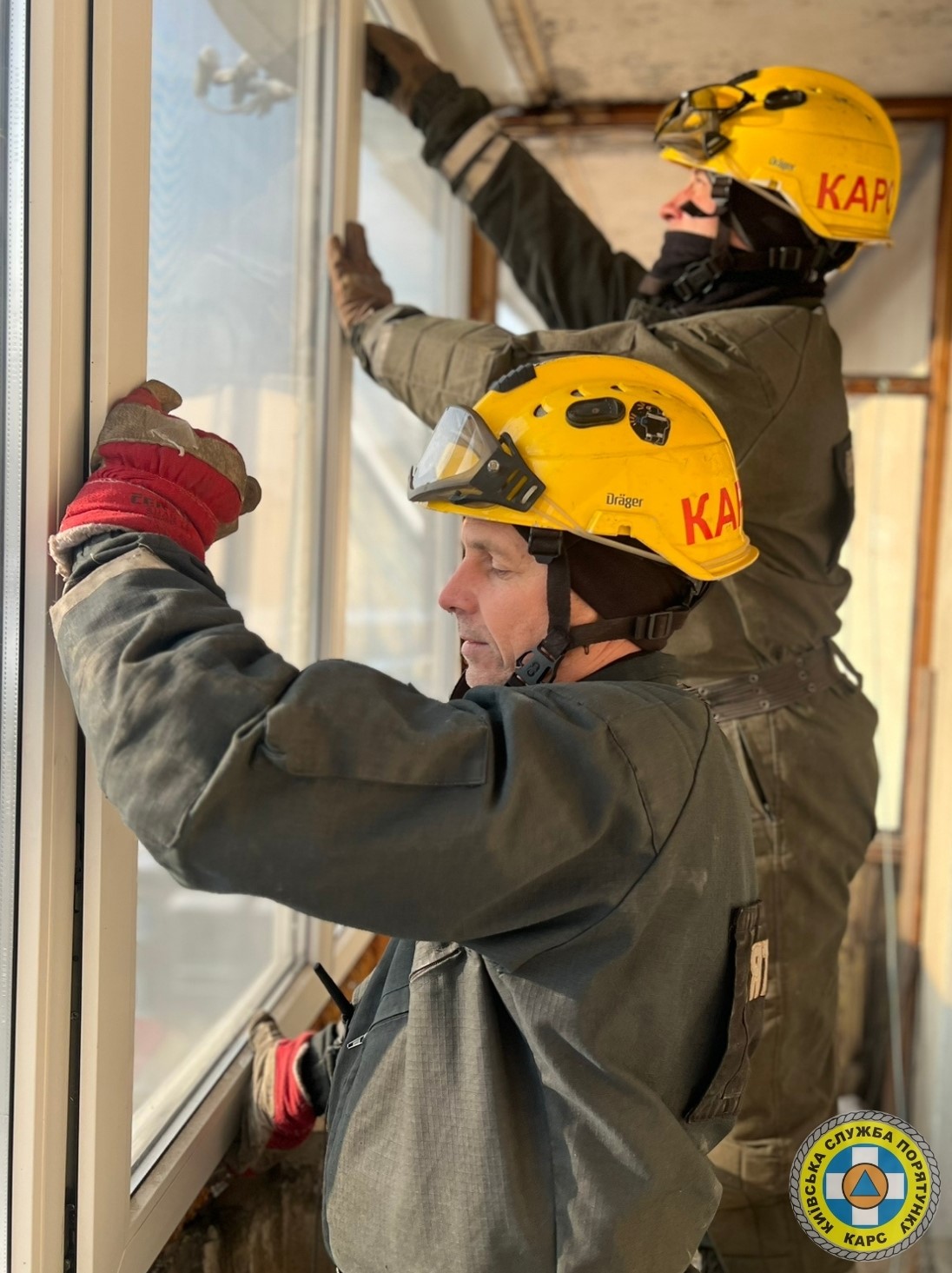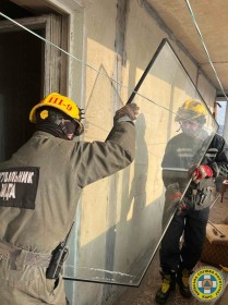 У житловому будинку в Шевченківському районі рятувальники КАРС демонтували понад 20 панорамних склопакетів і віконних конструкцій, які були вкрай пошкоджені та в разі падіння загрожували життю та здоров'ю людей.