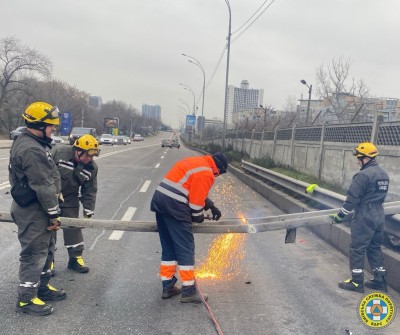 Рятувальники КАРС виконали демонтаж відбійника, який розвернуло від удару на проїжджу частину, перекриваючи її, прибрали аварійні конструкції, звільнили дорогу для руху автотранспорту.