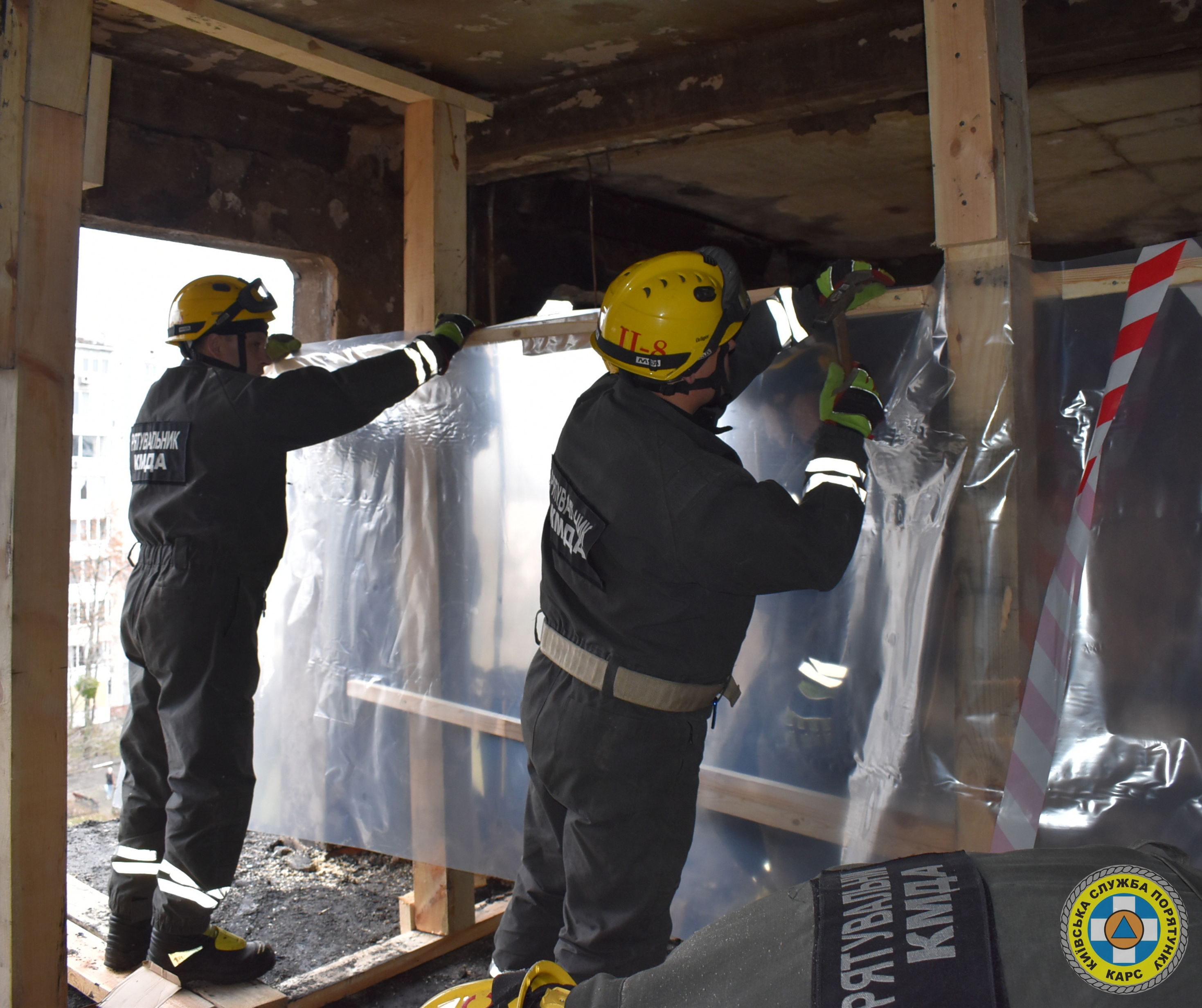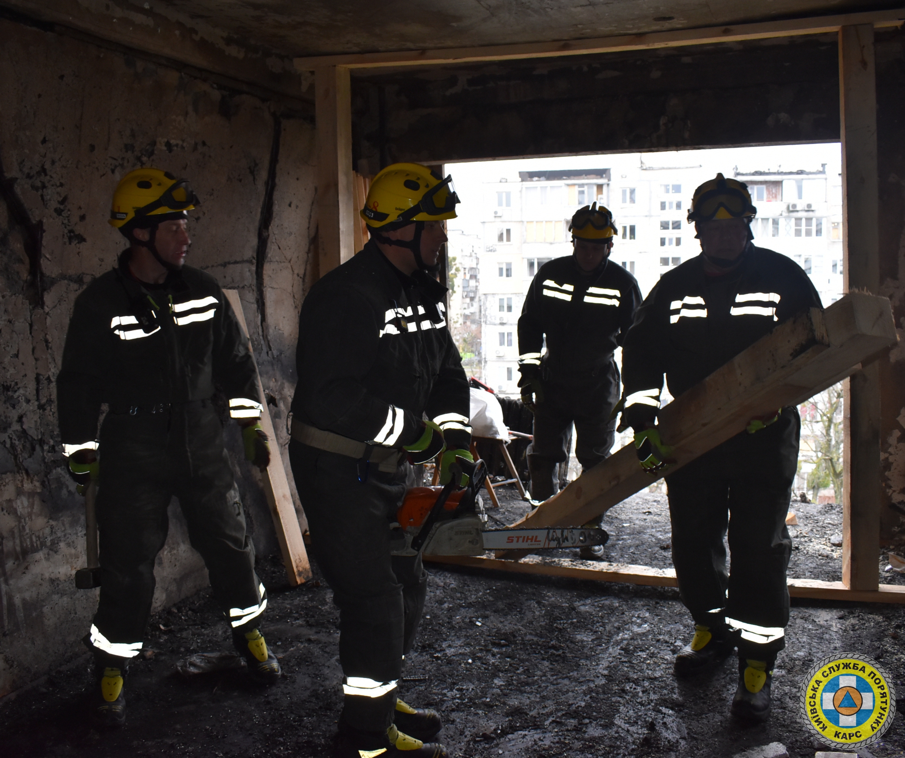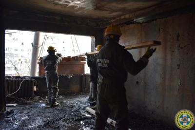 Зокрема, для запобігання подальшого руйнування конструкцій будинку рятувальники встановили опірні стійки в квартирах на верхніх поверхах, що зазнали найбільших руйнувань. Також огородили небезпечні ділянки для уникнення травмувань людей.