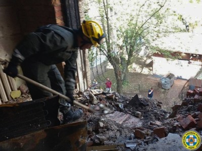 Наразі рятувальники виконують аварійно-рятувальні роботи в пошкодженій багатоповерхівці в Дарницькому районі: встановлюють підпори для подальшого розбору завалів у найбільш постраждалих квартирах.