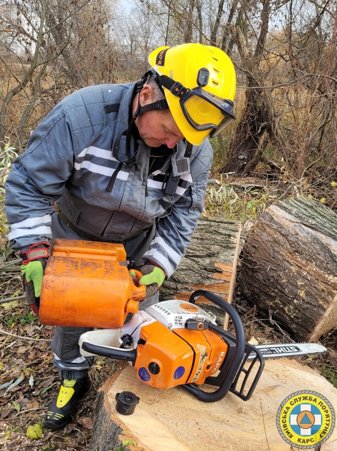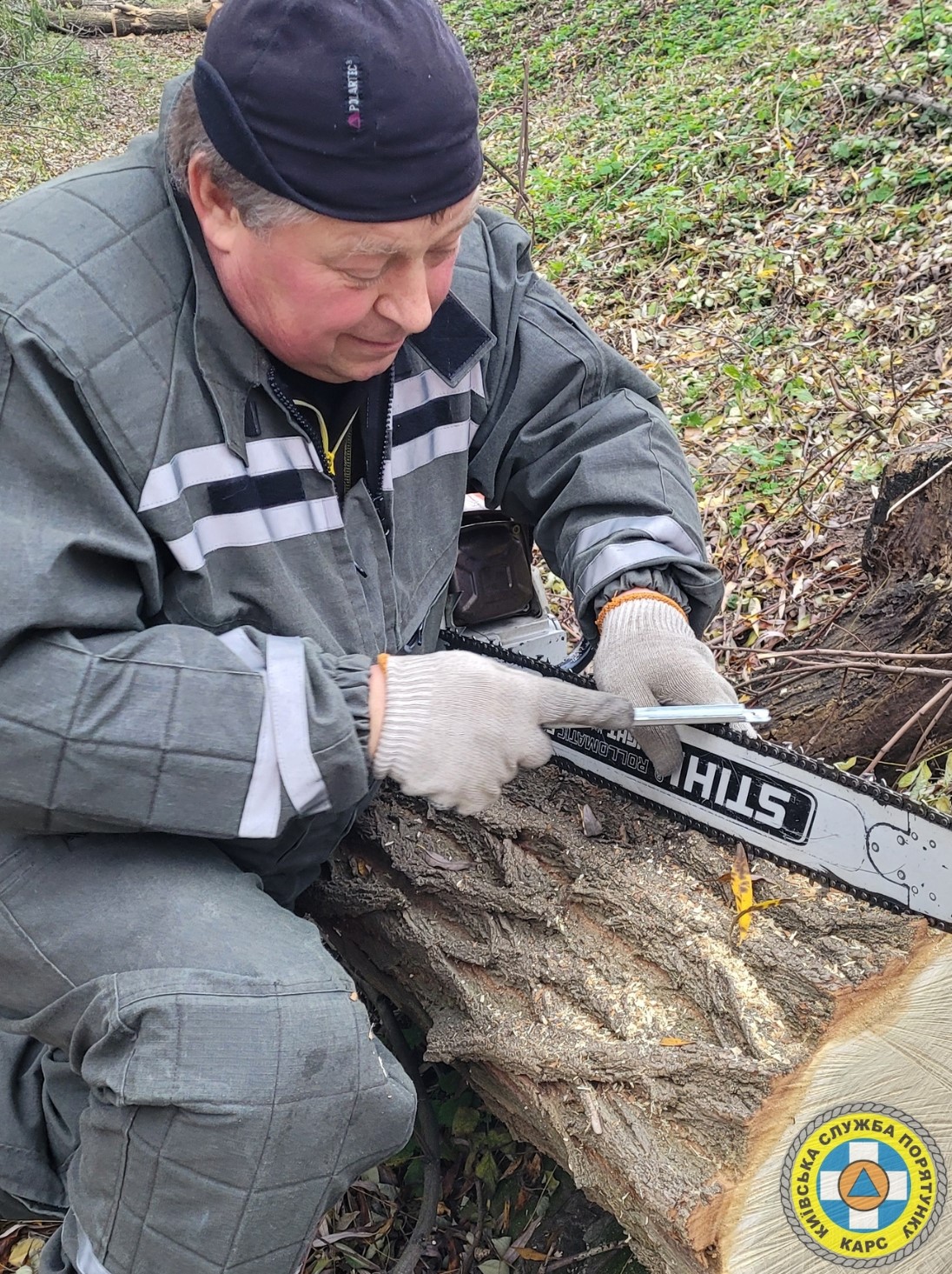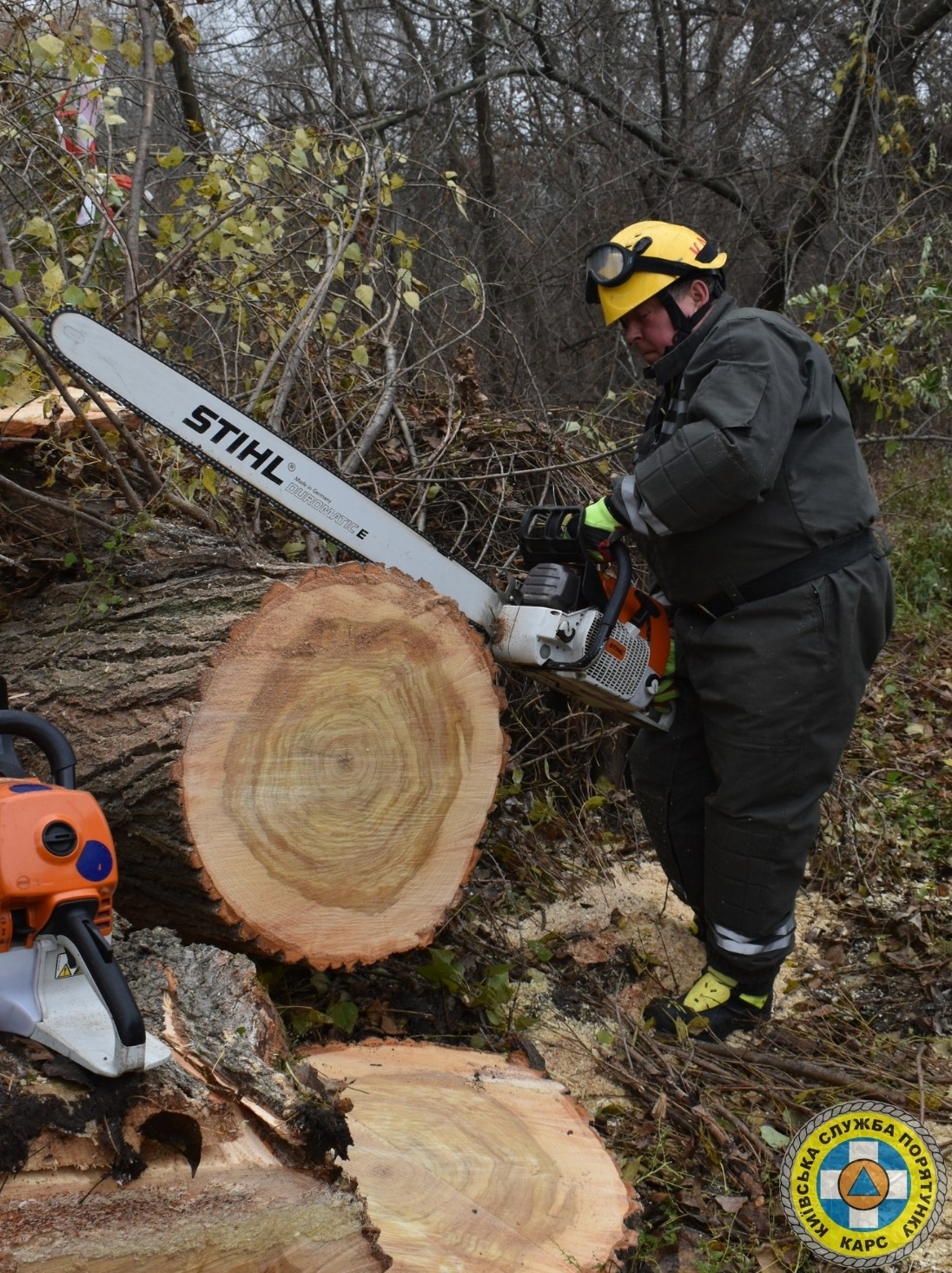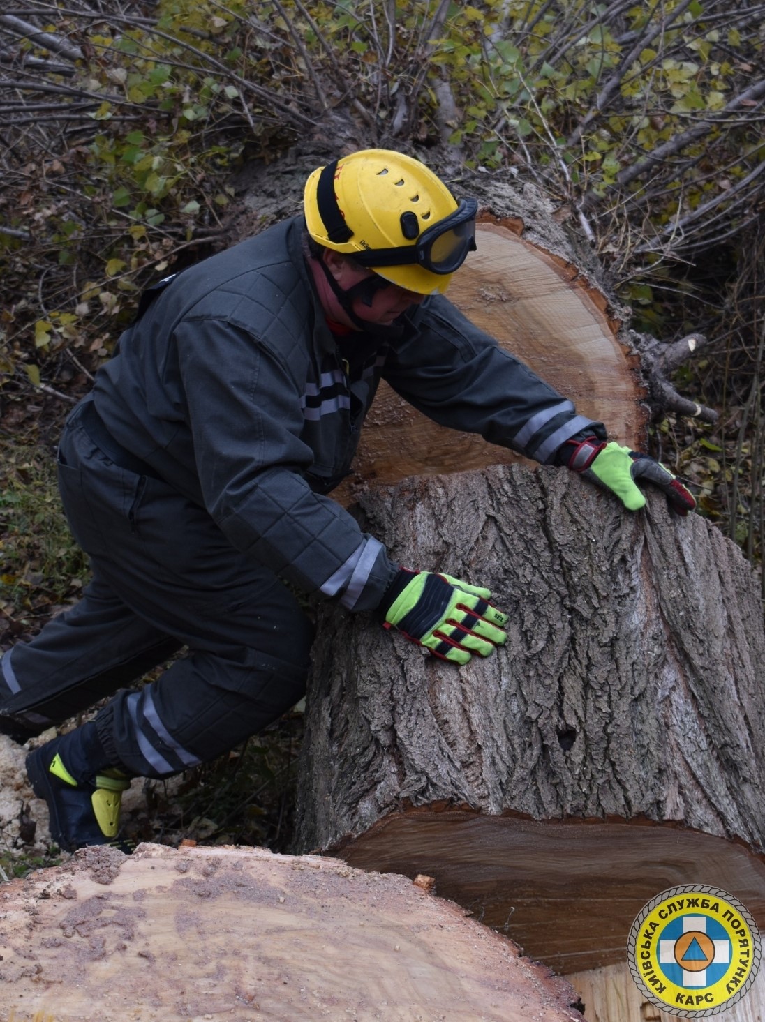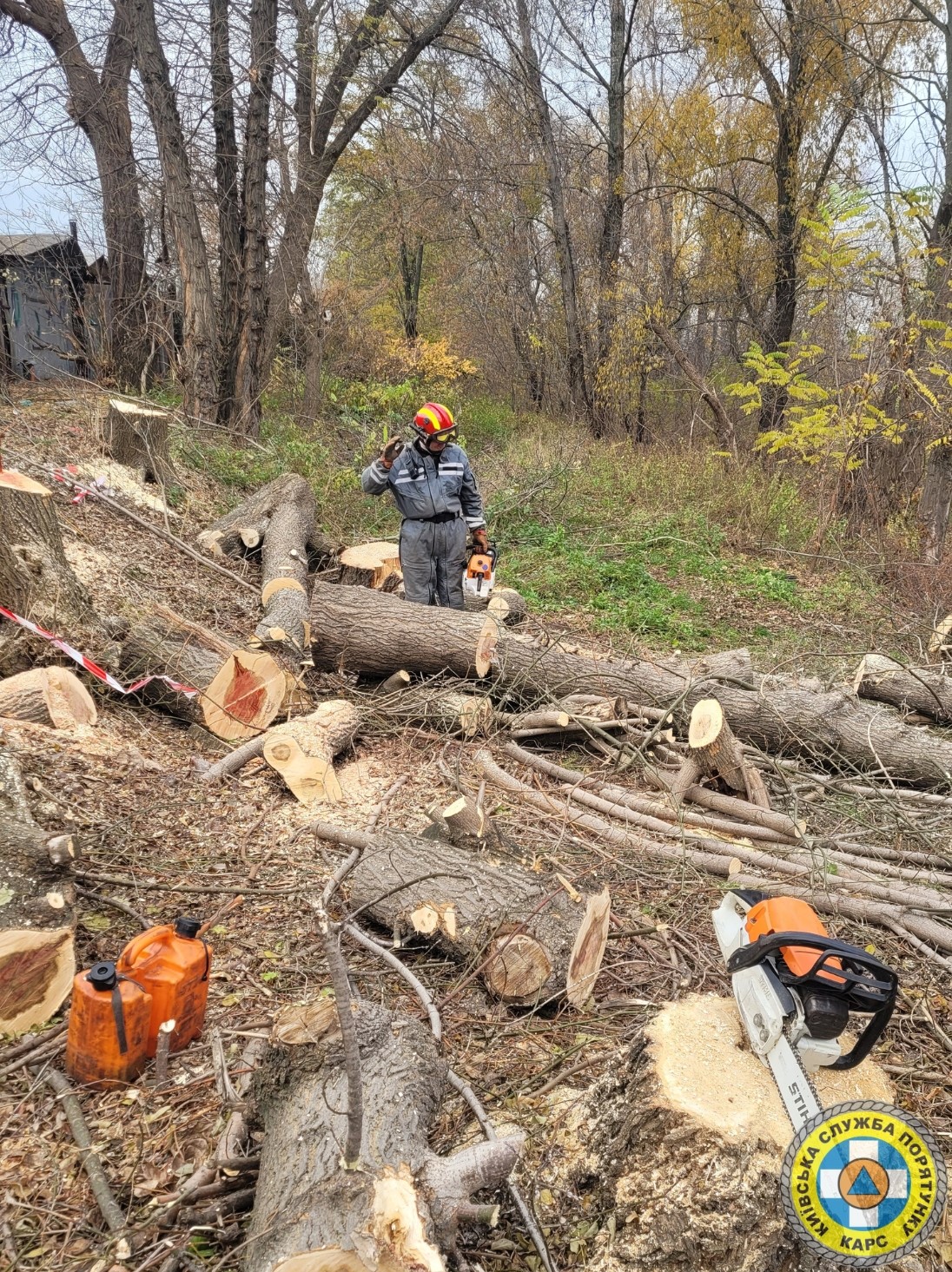 період з 07 по 10 листопада рятувальники чотирьох взводів комунальної аварійно-рятувальної служби (КАРС) «Київська служба порятунку» виїжджали на роботи в Оболонський район, де на території, прилеглої до гаражно-будівельного кооперативу "Луговий", потрібно було видалити аварійні сухостійкі дерева.
