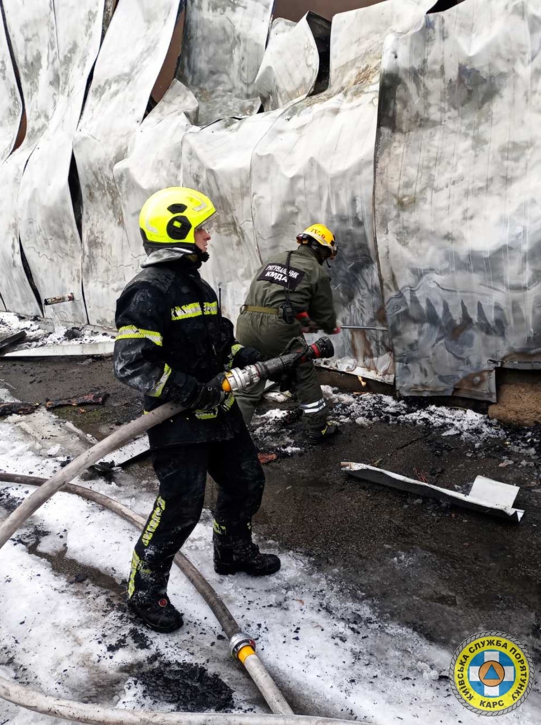Оперативні підрозділи комунальної аварійно-рятувальної служби (КАРС) "Київська служба порятунку" невідкладно виїхали на місце надзвичайної ситуації. За допомогою спецтехніки рятувальники КАРС зрізували листи каркасу та інші конструкції, щоб вогнеборці могли потрапити у важкодоступні місця для подальшого гасіння вогню. Після цього здійснили розбір аварійних конструкцій.