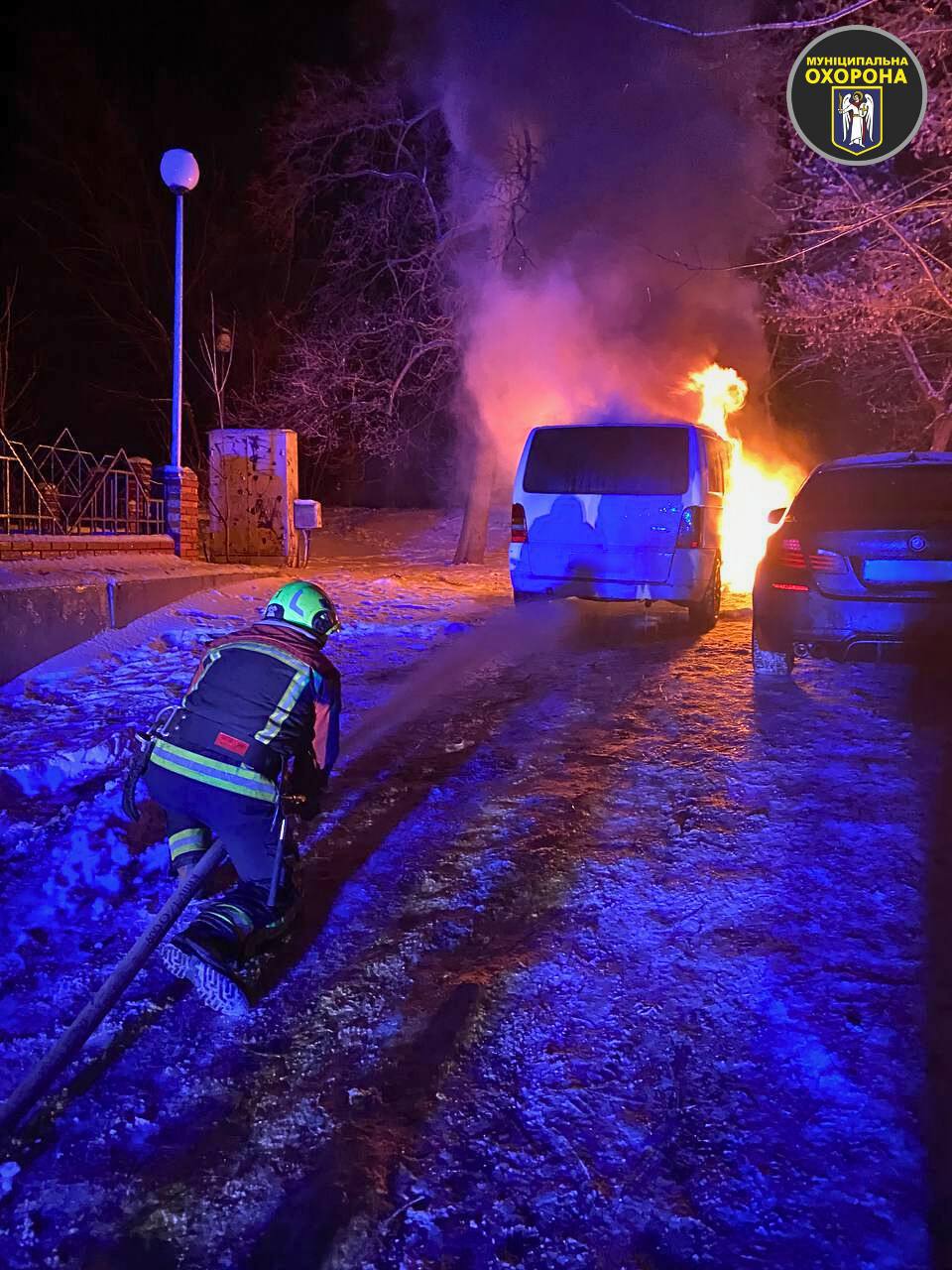 Цієї ночі проти 20 січня під час патрулювання наряд комунальної організації «Муніципальна охорона» помітив загоряння мікроавтобуса на бульварі Лесі Українки, що в Печерському районі міста.